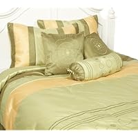 This is pretty that is the only good thing I have to say about this set.. For $70 you get a set that would be sold at the dollar store for $20. I am so disappointed I may Cry!! The top is so rough it scrathes my face and the underside is supper thin polyster. When we put it on the bed it was falling aprt already. My husband Hates it. I am probly returning this because in MN winters this will not do..Pretty. Easy to look at. Amazing how well all that stuff fit in one small shipping bag. My only dissappointment is that it is pretty "lightweight" better for spring/summer than year round. Had to buy a blanket to put under it.