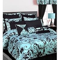 This is a beautiful comforter. Exactly the color it looks in the picture. Like a seafoam green and black. Love it.This entire set is awesome. The comforter is cozy and soft. My only complaint is that the colors look a little worn after a few washes. Even the black doesn't look as bold anymore.I browsed through hundreds of bed comforter sets online and as soon as I saw this one I fell in love! It is just as beautiful in person as in the picture and its very comfortable! I spent a little more than I was planning, but this set is well worth the value. It comes with everything you need. Very satisfied (: