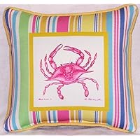 Betsy Drake SN102 Pink Crab Small Outdoor-Indoor Pillow 12"x12"