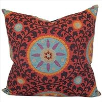 The item is gorgeous, the shipping was top notch. However, in the photo of this pillow, you can see the bluish design on the corners of this item. When I rec'd it, the corner design is not on the pillow. I expected the pillow would have this design, as I have an identical pillow with the corner design. Disappointed. But quality pillow. Also the pillow shows a navy blue reverse side, however, when it arrived it has a light tan reverse side.