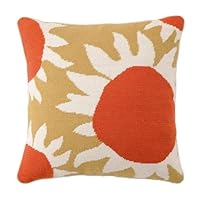 I bought this pillow for the colors shown and was not disappointed. They're vibrant and very true to what is shown on the screen. The front of the pillow is textured, almost knotted wool, while the back is a wine-brown velvet. It is well-stuffed with down, with just a little give if you lean on it. I like a lot of the Trina Turk throw pillows and this one does not disappoint!