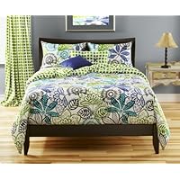 So soft, very warm comforter, nice bright colors! Others said the duvet felt lightweight, but I disagree. It's not super bulky and heavy, but it feels a lot like the synthetic down comforter that I used to have. It's very cozy, and the fabric is amazingly soft. Plus, it was almost wrinkle free right out of the bag, so that was a huge plus. I am NOT one to iron my bedding! LOVE this set! Very high quality for the price!First time I've even written a review for Amazon but felt compelled to because I am so pleased with this set. The material is a beautiful, soft fabric that won us over before it was even out of the package! The colors are rich and deep the blue is brighter/deeper than navy, the green is not olive or green apple but a rich color I can't quite put a name to. The background is not exactly white, just enough of an ivory to dress it up, without being off white enough to not look well with a white bedskirt. The zippers on the duvet and shams make it lie much nicer than buttons, and the size of the shams is generous enough that my pillows don't pucker. One reviewer mentioned a purple pillow that didn't match. I'm not sure how they packed that set, but our pillow was a blue with turquoise edging that matched perfectly. My daughters keep coming into our room to lie on our bed, so that should tell you something! A little more pricey than others we considered, but the quality makes it worth while.We've had the same bedroom set for 15 years so when I decided it was time for a change I wanted to be sure it was something that I would like for a very long time. It took me about 6 months of looking but when I saw this one I knew it was it. The colors are true to what I saw on my computer, bright without being obnoxious. It's soft and I like that it's actually a duvet cover so I can use it in the summer without the duvet. Although we have a queen size bed I got a king size cover because I like the extra overhang. My husband likes that it's not too flowerly. Now I just have to decide what color to paint the walls, should only take me a couple of months:-)Saturday, September 28, 2013