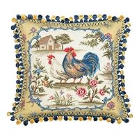 Country Rooster 100% Wool Needlepoint Pillow