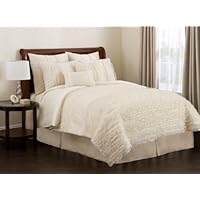 UPDATE (22FEB12):Exchange went off without a hitch. Replacement product arrived very quickly and is flawless. My mother loves this comforter set. It would be nice if you could buy extra items like pillow covers and accent pillows, but additional items offered by Lush Decor are hard to find. My mom recommends this product.Nice comforter, pretty ivory color, and the faux silk is nice. Good value for the price. Is a bit smaller than I would like in the king size, doesn't really cover to the skirt properly.