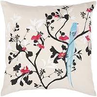 This review is purely for the pillow, as I did not buy it on Amazon. I'm very happy with it. It truly looks like the picture. The tree is part of the fabric (might be screen-printed) and the bird is sewn on. It's machine-washable, but I suggest using a garment bag to ensure nothing snags it. So far it's held up well.
