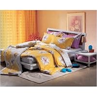 This was a little bit of work, but it was worth it! I bought a queen-sized heavy-duty down alternative comforter, which is quite a heavy cover. The yellow floral duvet cover fits it perfectly, but first you have to lay both pieces out and get them turned the right way around, then begin filling the cover into the duvet. I wrestled and stuffed, wrestled and stuffed, until finally I got the cover snapped up inside its duvet. Then I had a friend help me by taking two corners and I took two corners and we shook the thing good so all corners were lined up. A perfect fit! The yellow floral topside of the duvet is very brightly colored and pretty and cheerful, just as I wanted; the reverse (inside) is white and blue and also a pleasing fabric. I don't know what the thread count of the duvet is, but it is nice and smooth and soft. I say 5 stars and I'm happy with my purchase. I will be even more happy when next fall comes and I already have a winter cover ready that I got at half price. :-)