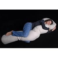 The material it is made from is kapok (tree fiber, more hypoallergenic) and I'm not sure if it was that or how it was shipped but it smelled slightly moldy when we got it but after dry cleaning the smells basically non existent. My husband did read online that the kapok material has a smell of its own so perhaps that was it and just condensed when shipping. I will say once we rid the smell I slept with it and had a wonderful nights sleepperhaps my best nights sleep with it. NoteIt does not come with a pillow case/cover.I love it! I have looked for a body pillow for a long time that was substantial. I finally found one!Tuesday, November 26, 2013
