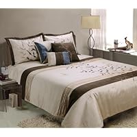This bed set is beautiful! It comes with everything you need to have a stylish looking bed. The comforter has a slight sheen to it, which I like. It isn't SUPER warm-we live in the midwest so we need warm blankets in the winter. But the look of it is awesome. Really looks nice.