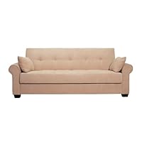 Oh... the cushion/pillows are small and not filled with enough stuffing. I'm planning on getting better throw pillows and getting a bed pillow to keep underneath for guests. The couch has to be pulled out from the wall about a foot and a half before using the click-clack mechanism (which works great) to turn it into a bed. Also, after sitting on the couch, the fabric looks loose when you get up. You have to smooth it flat again so the thing looks neat. This unit would never last with heavy use but for a sewing/craft-guest room it seems ok. Looks good... low quality.
