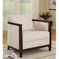 BARREL ACCENT CHAIR with WOOD TRIMMED WHITE PILLOW BACK