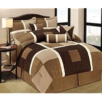 Buy Queen Size Brown, Mocha, Tan Tones Square Design 7 Piece Comforter Set Now