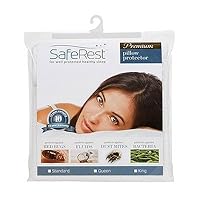 If you really need a waterproof cover, this is not it.My husband and I purchased SafeRest mattress protectors for all the mattresses in our home to protect our mattresses from stains and allergens. Our two daughter have asthma and had been told that these may help. The mattress store we purchased our beds from had these, but they were over $80 a piece, which seemed a bit much given we were buying 3 protectors. The material is nice and thin so you can't notice it's there and it doesn't make any noise. The terry is also nice. My daughters appear to have benefited from the protectors so far. We wash them about every two weeks to kill the dust mites and they fit the mattresses very well. We are very pleased with this purchase and wanted to share a review.I bought the SafeRest box spring and mattress encasements and pillow covers for every pillow we own as a preventive measure, as my husband travels for work to multiple cities and states every single week. He stays at numerous different hotels and recently got bitten by bedbugs at one. We made sure he didn't bring any back, but I got the encasements just in case in the future.