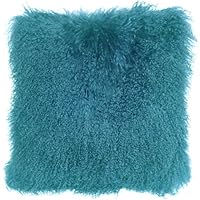 Pillow Decor - Mongolian Sheepskin Teal Blue 18" x 18" Decorative Throw